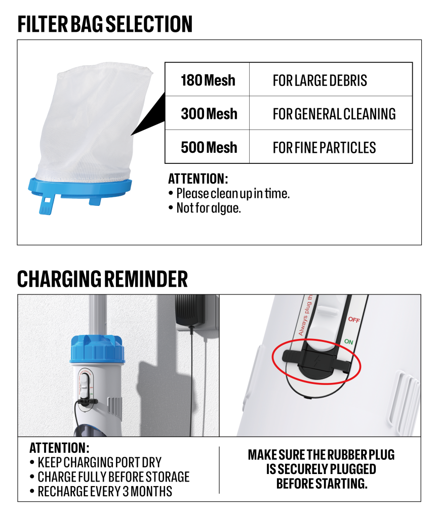Choose different mesh bags to deal with different swimming pool conditions
